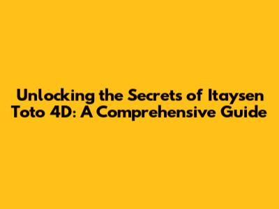 Unlocking The Secrets Of Itaysen Toto 4D: A Comprehensive Guide